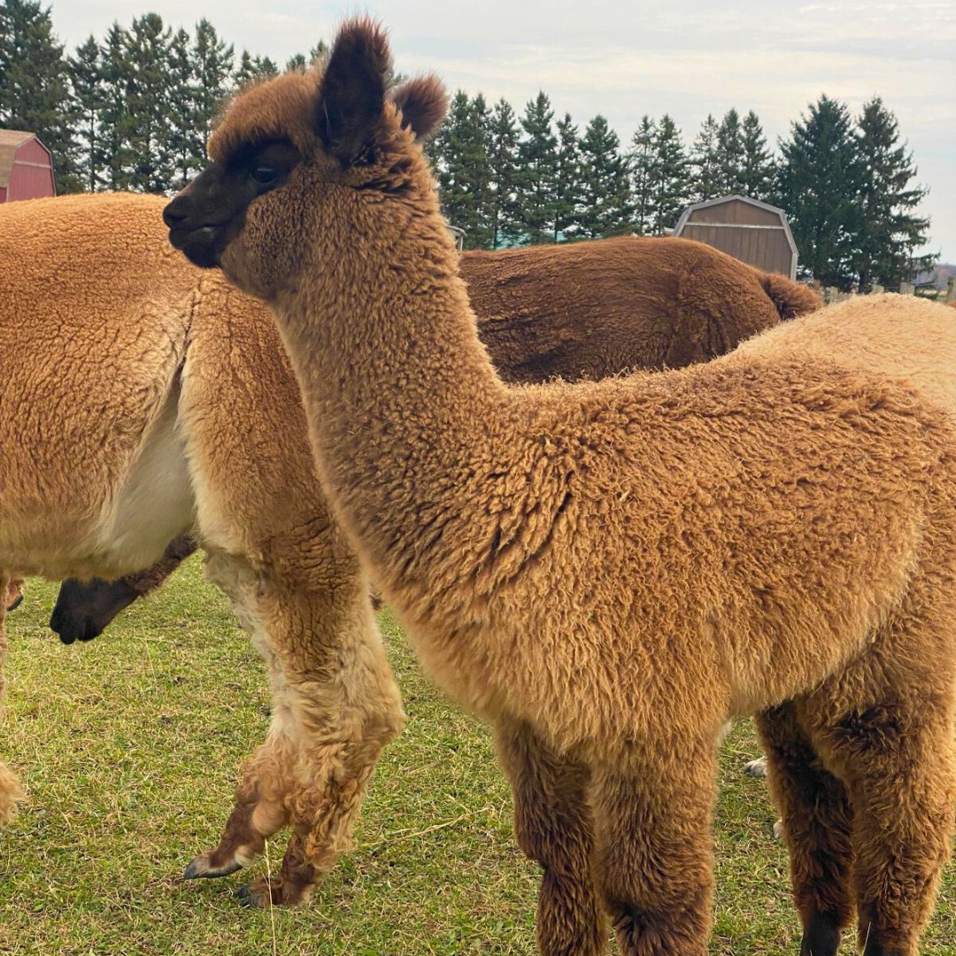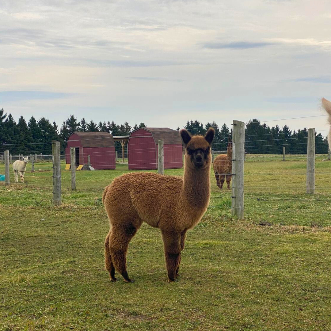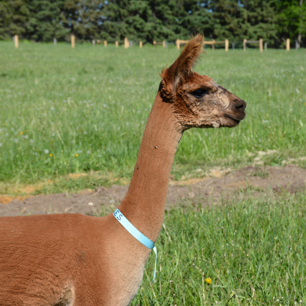 Elton is a gorgeous dark brown male, small in size and quiet demeanor. Has been socialized around people but not coddled. He should go to a location that has another male cria of similar age ideally. Alpacas are herd animals and need the companionship of other alpacas. Note: Males and females should not be housed together.