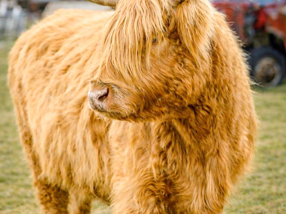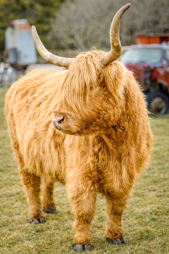Defining Features: Rich caramel-colored coat, classic wide-set Highland horns.