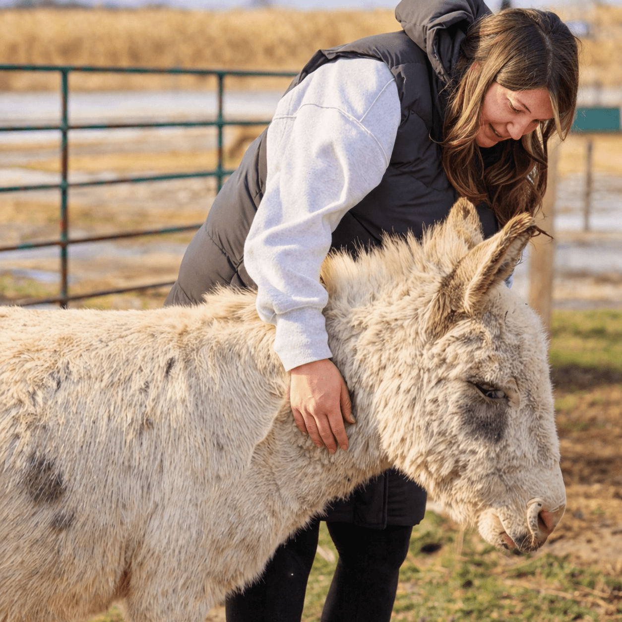 Picture this: you’re walking a donkey through our farm fields, stopping every so often for cuddles, laughs, and a few photos you’ll definitely want to keep.