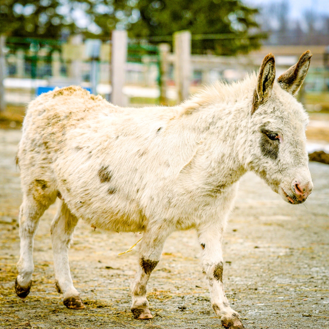 When they’re not visiting with guests, our donkeys spend their days together in the pasture handling important donkey business: lounging, rolling in the dirt and debating which snacks are the best.